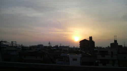新幹線からの夕陽。