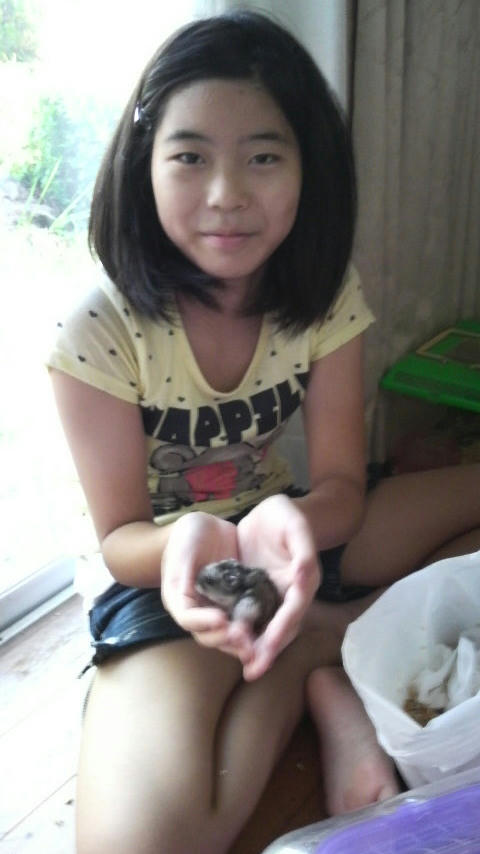たまきちゃんか、ハムスター達のお家のお掃除をしています d=(^o^)=b