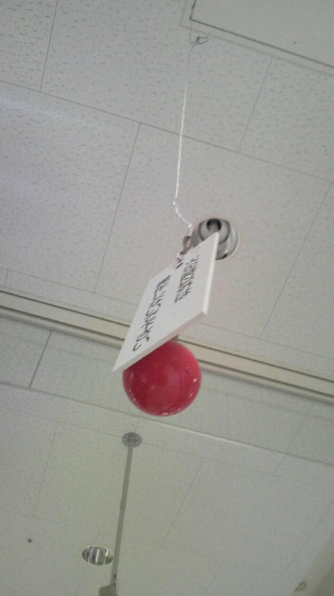 高い天井から、火災の時以外は引っ張らないでください。と、謎のワイヤー。