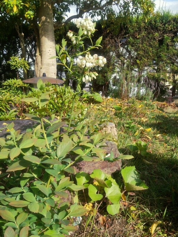 わが家の庭で、ブルーベリーの花が咲きました。