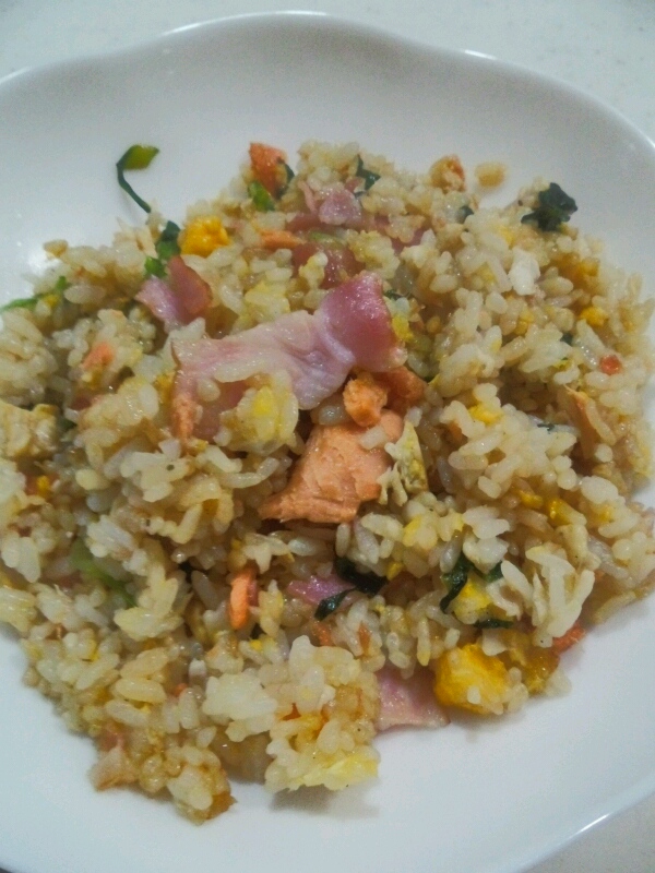 ベーコンと鮭の炒飯
