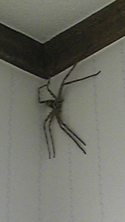 ネットで調べてみると、アシダカグモと言う蜘蛛で、ゴキブリハンターと呼ばれ、ゴキブリを食べる益虫らしい d=(^o^)=b
