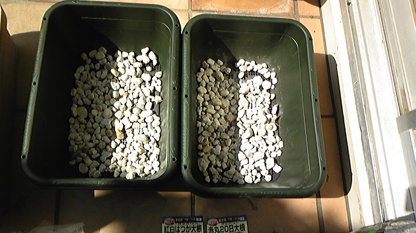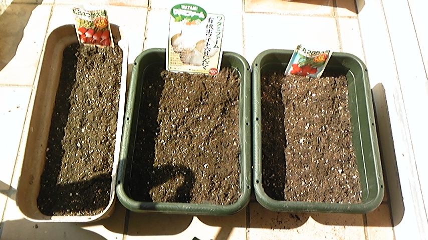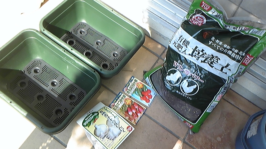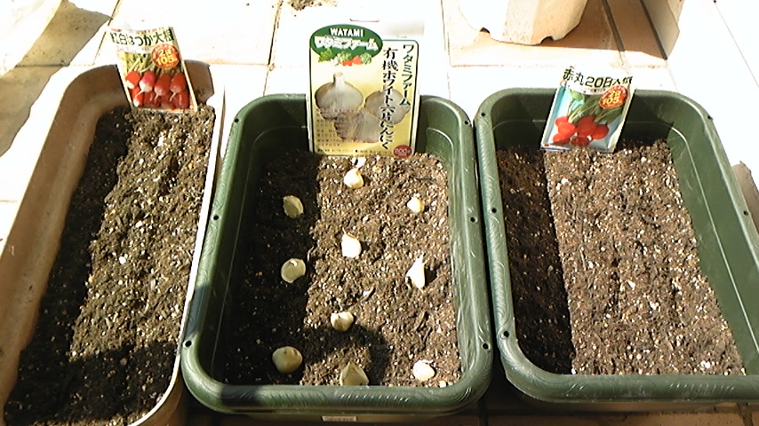 今日、プランターににんにくと二十日大根を植えたとのこと。