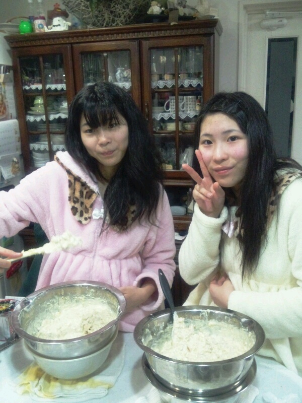 昨日の夜、なぜかちーちゃんと、たまきちゃんのバレンタインチョコレート作りのお手伝い。